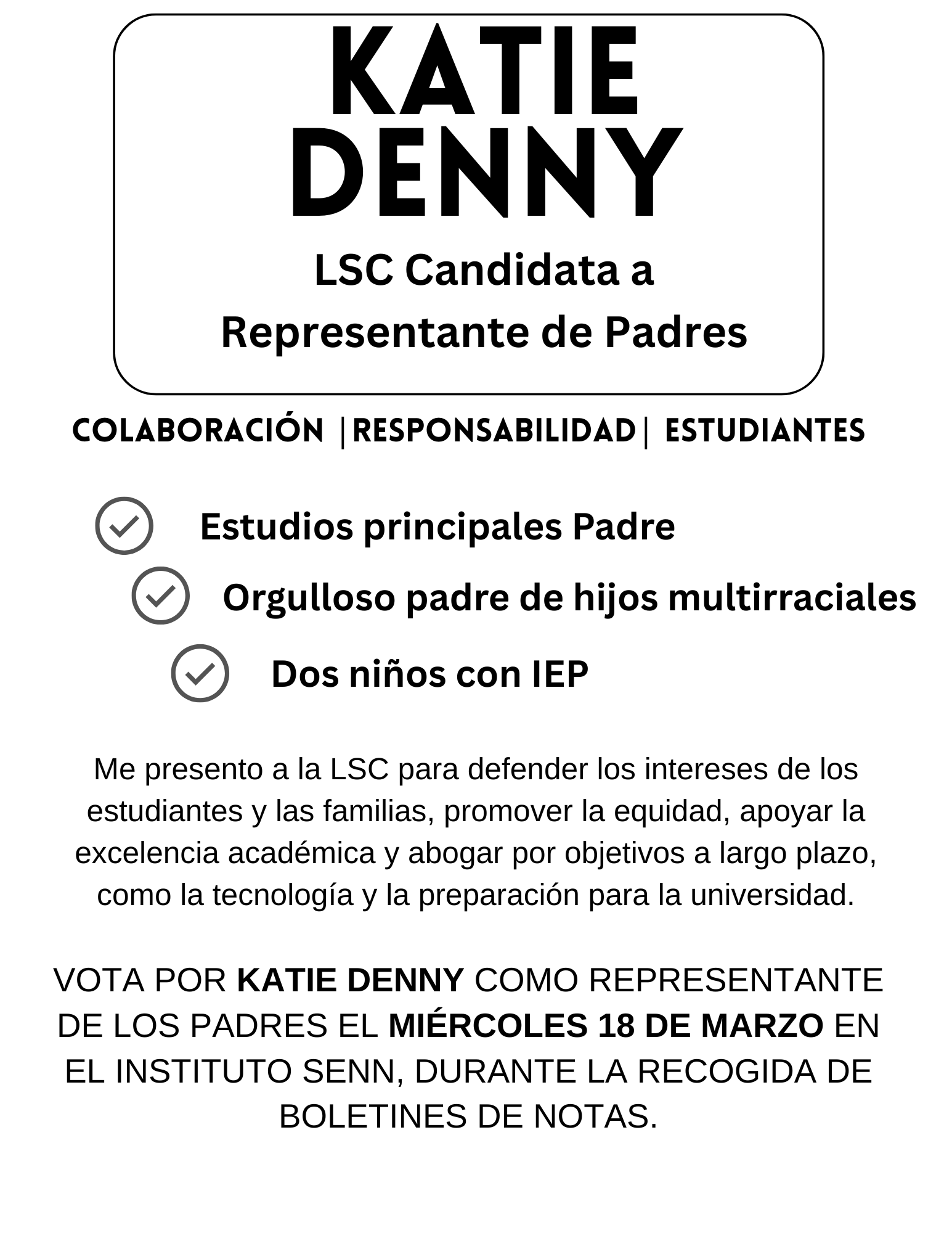 I take seriously our responsibility to ensure that Senn’s budget is aligned with the school’s improvement plan & student needs. I would make sure major spending decisions are directly tied to CIWP goals and support ongoing monthly oversight. My commitment is to ensure that every dollar supports high quality instruction, a safe school environment, & equitable opportunity for all Senn students.